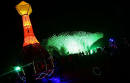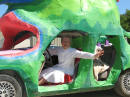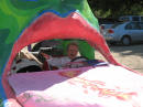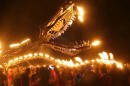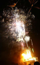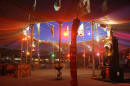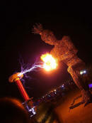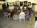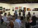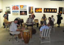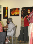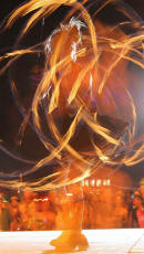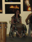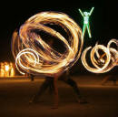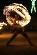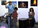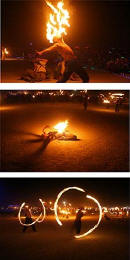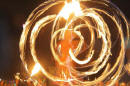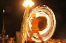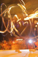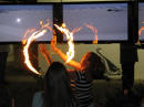 Claus Birgman of exhibition with drum circle and fire spinning