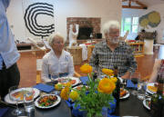 in the main room of Laure's home, Barbara and Laure went over the