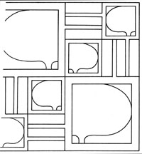 While the fifties had been dominated by their approach, which critics labeled “Abstract Expressionism,” the attention of the commentators and curators of the following decade turned to two styles that developed in quite different directions, from each other and from expressionism: Pop Art, which adopted themes and styles from the imagery of popular culture and commerce (Robert Indiana, Roy Lichtenstein, Claes Oldenburg, Ed Ruscha, Andy Warhol, Tom Wesselman); and so-called Minimal Art, which remained entirely abstract and severe and was defined most frequently in reference to the work of sculptors, often in the form of installations (Carl André, Donald Judd, Robert Morris, Tony Smith, Robert Smithson). Most painters working in a similar mode (e.g., Al Held, Sol Le Witt, Agnes Martin, Ad Rinehart, etc.) also employed geometric forms and what were termed hard-edge figures. In suggesting that this group bears close comparison to Jesse’s work, I do not imply that he was influenced by or felt affinity to them—he paid as little attention as possible to contemporary art—but just that he was similarly dedicated to meticulously painted and primarily planar figures, clearly defined edges, and a restricted color range. Such basic structures as the rectilinear grid permeated our consciousness without our knowing it, most obviously in architectural and urban design, the field in which he was teaching.
