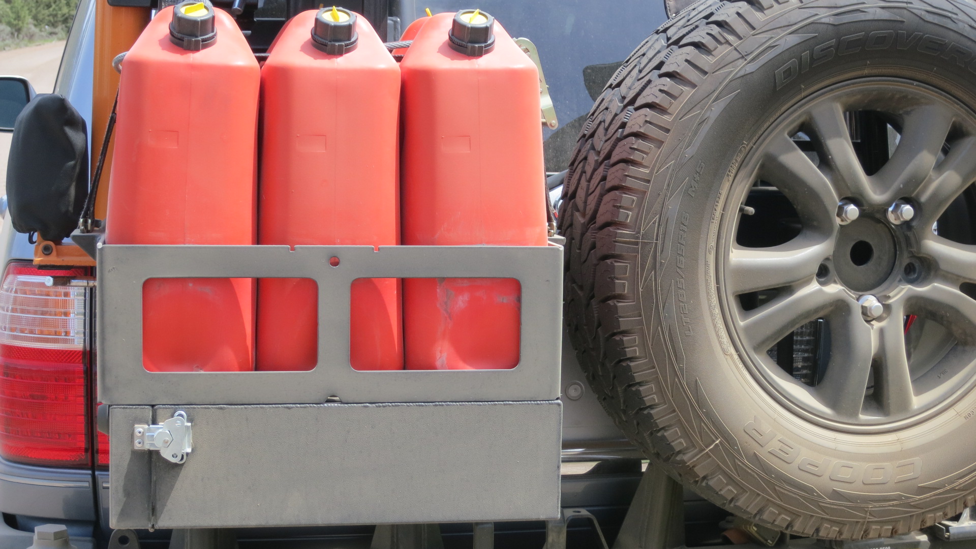 fabricated and mounted 3 jerry can basket with 3 Jerry cans.
